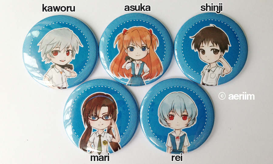 Set of 5 Evangelion 1.75" pinback buttons. Includes all buttons shown.